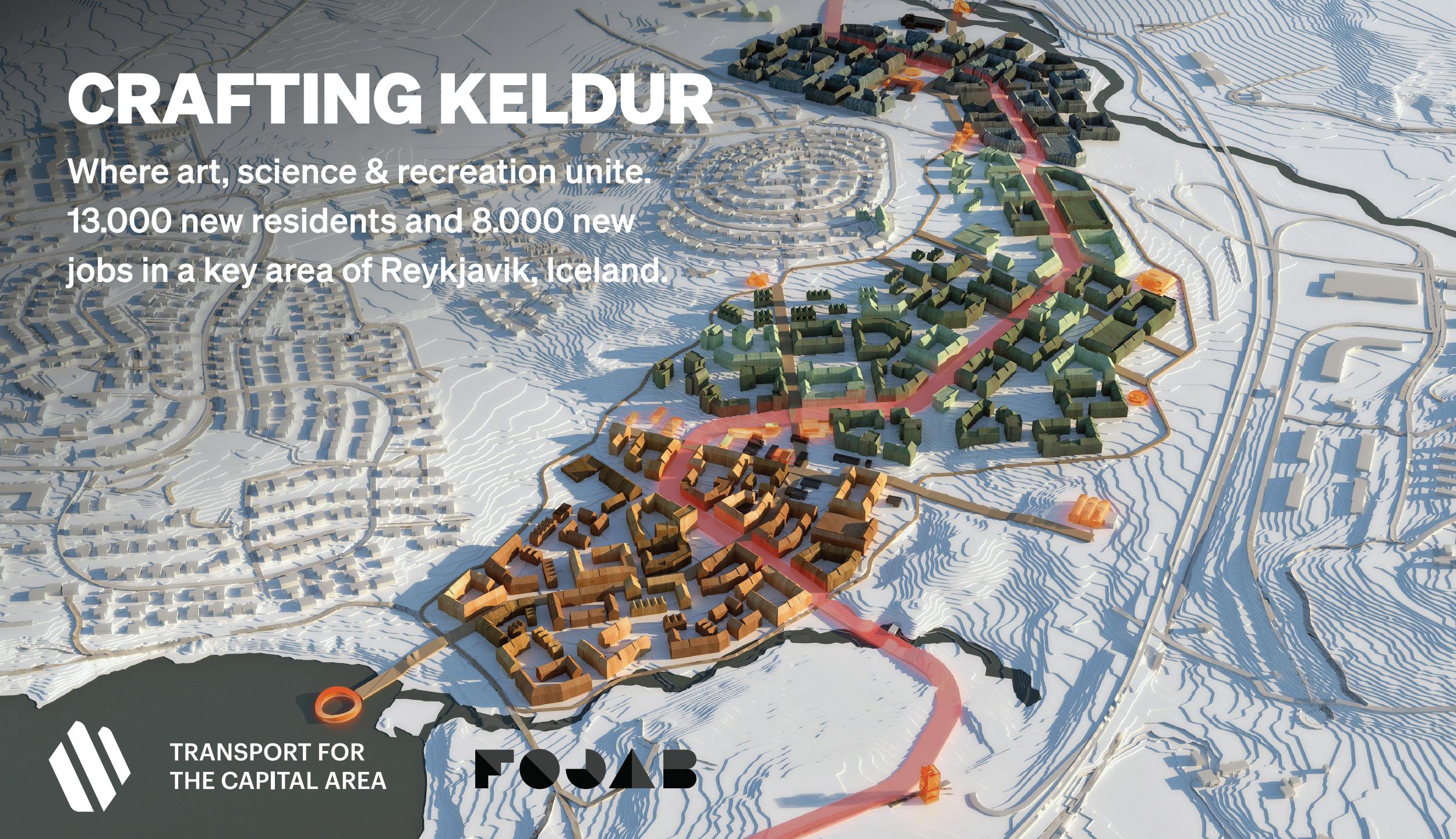 Where art, science and recreation unite. A dense urban, climate neutral development for 13,000 new residents and 8,000 new jobs in a key area of Reykjavik. New public transport system will be the connecting spine with focus on closeness to nature.